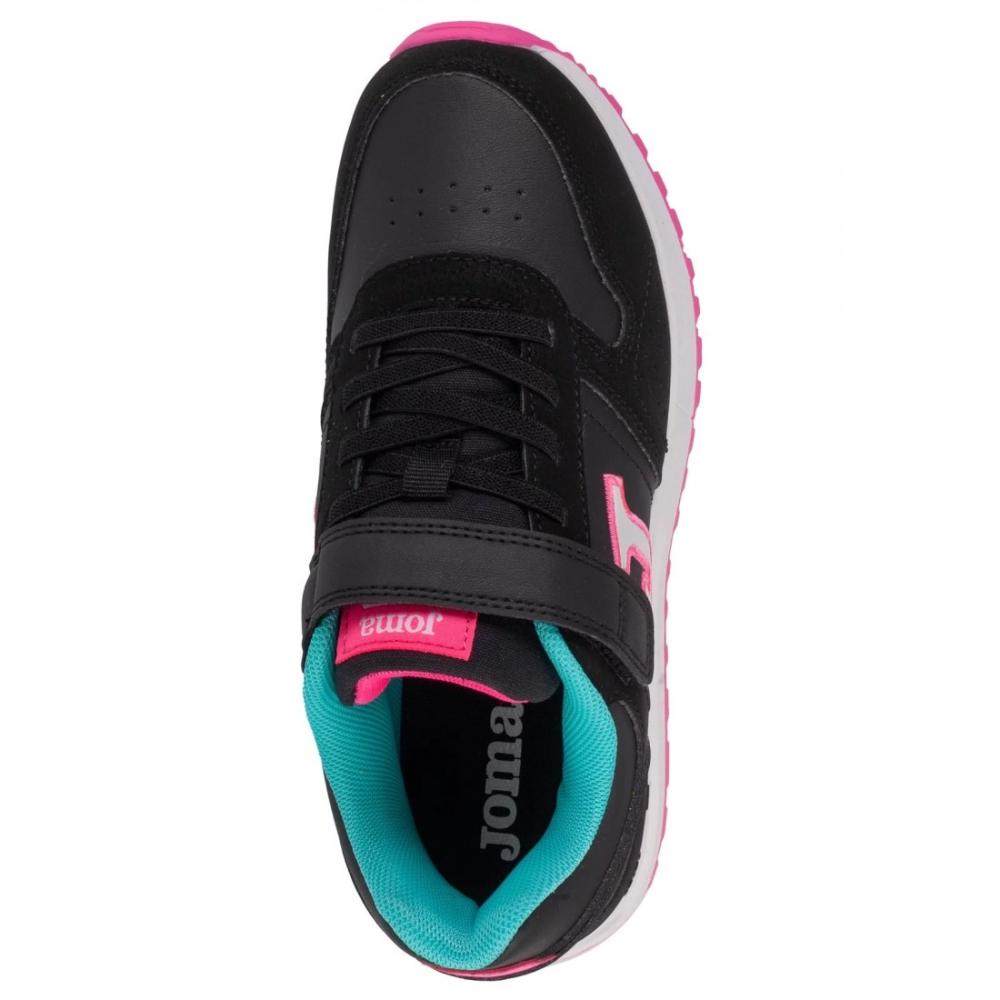 Calzado casual de la marca Joma para niño, realizado en material sintético perforado con forro textil y plantilla acolchada. Puntera reforzada en Micro PU resistente al rozamiento. Cierre de velcro y cordones elásticos para facilitar el calce del pie. Modelo con diseño en tendencia que combina distintos materiales, indicado para uso diario y tiempo libre por su excelente comodidad. El upper está elaborado con piezas de piel sintética PU, lo que le da un toque moderno y llamativo, en la parte delantera se ha aplicado la tecnología VTS para mejorar la ventilación del sudor. La suela de phylon esponjoso está inspirada en el running y contribuye a la absorción de los impactos y la reactividad.