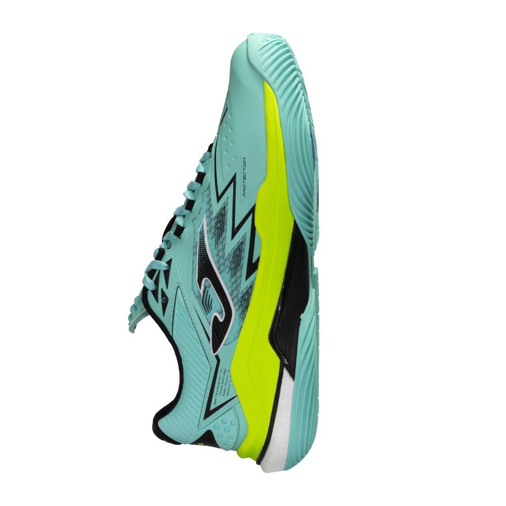 El upper está elaborado, en primer lugar, con mesh transpirable, que presenta un elegante acabado en Jacquard con perforaciones VTS. Gracias a esta tecnología, la ventilación del sudor está asegurada. En segundo lugar, lleva el sistema de ajuste termosellado JOMA SPORTECH en zonas estratégicas, mientras que se ha usado la misma técnica en la parte delantera creando la tecnología PROTECTION. La visión general es un corte ligero, flexible y con alto nivel de sujeción.